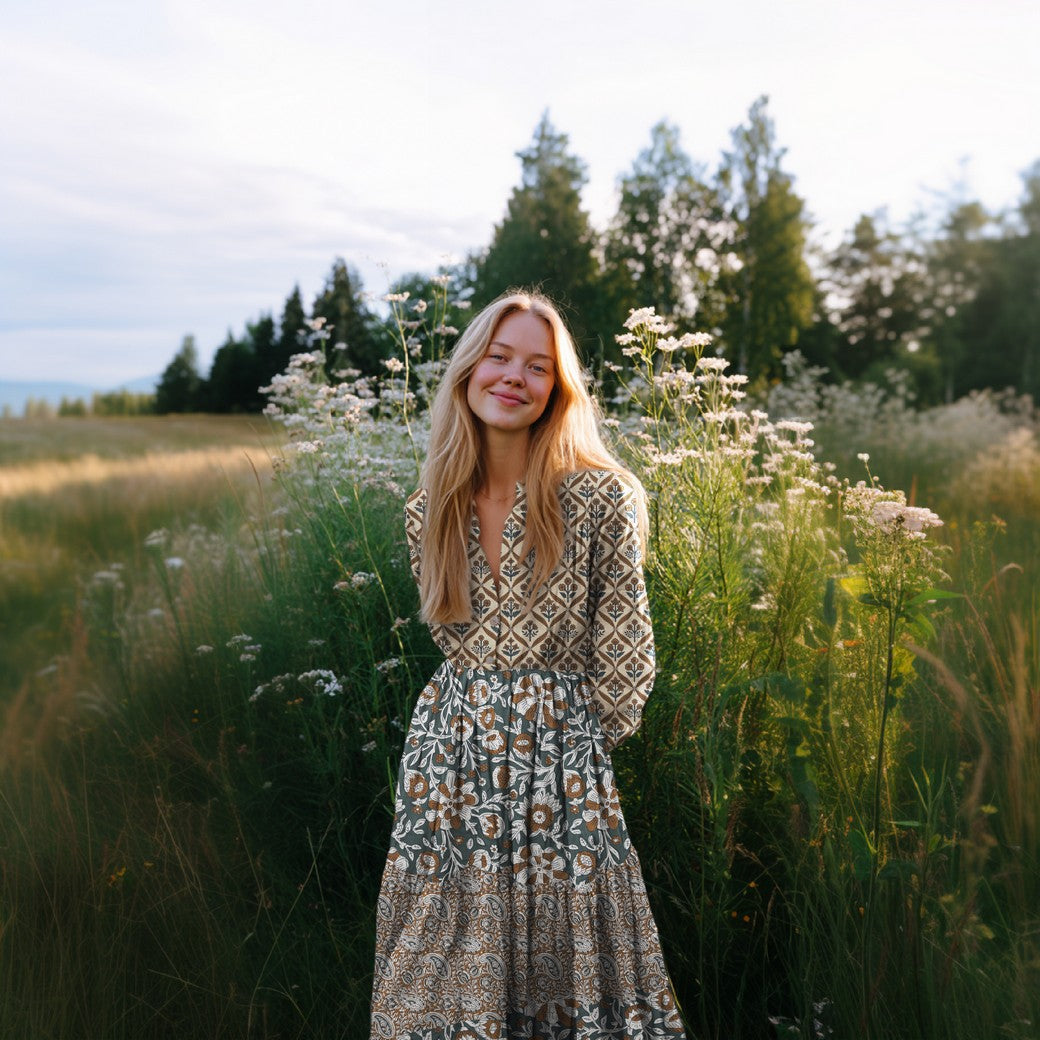 HANDCRAFTED BLOCK-PRINTED COTTON FLOWERS GREEN