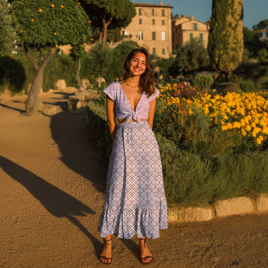 HANDCRAFTED BLOCK-PRINTED COTTON FLOWERS WHITE